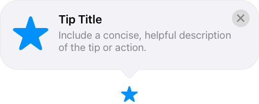 If there’s an image or symbol that people associate with the feature, consider including it in the tip, and prefer the filled variant. For example, a tip with a star can help people understand that the tip is related to favorites.